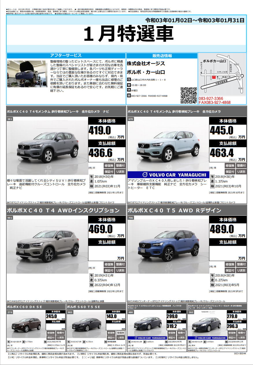 2021年初めの特選中古車のご案内です。