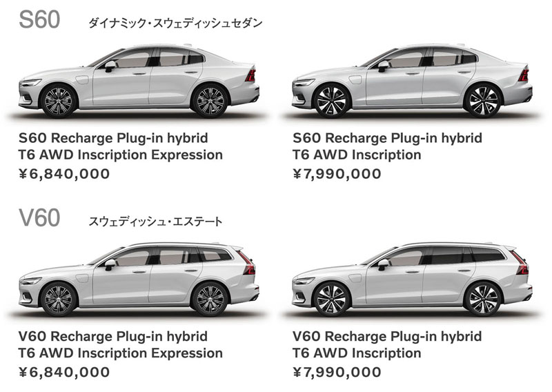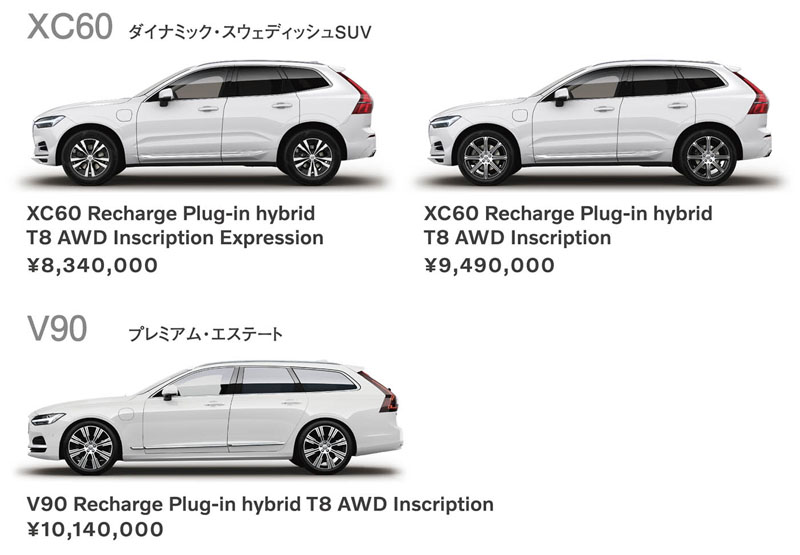 現在のところリチャージプラグインハイブリッドモデルは「T5/T6/T8」の3タイプを設定。XC40に「T5」、V60とS60に「T6」、